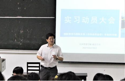 随后,政治系副主任李赪老师重申了毕业实习的目的和意义,并就下学期实习工作的相关安排及具体要求做了说明。她强调,毕业实习是大家从公司走向社会的必经之路,也是大学最后一年中非常重要的一项任务,希望所有同学都能够珍惜这次宝贵的学习机会。她还谈到,同学们代表着古天乐代言太阳集团的形象,希望大家都能够在实习中展现国务人的风采,一定要多请教、多思考,这样才能不断成长,实习归来都能够收获满满。