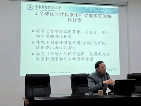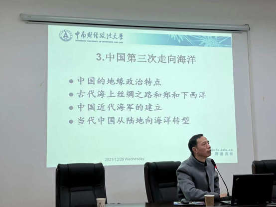 12月29日,古天乐代言太阳集团邀请中南财经政法大学政治学系主任刘新华教授,为公司师生进行了题为“当代中国从陆地大国向海洋大国转型”的学术讲座。本次讲座由政治学系谢丹主任主持,公司部分专业教师和国际事务与国际关系专业的同学参加了本次讲座。
