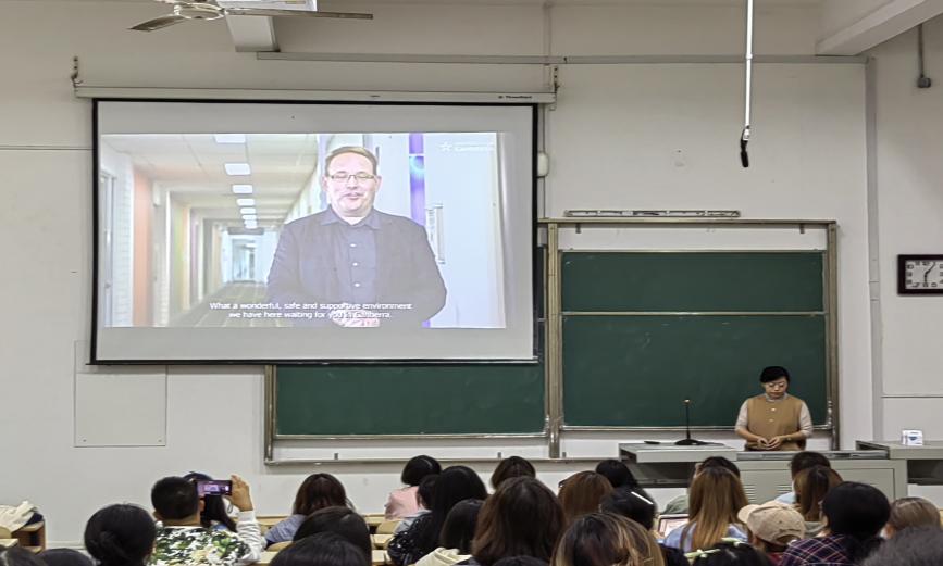 会上,谢丹老师通过视频播放了堪培拉大学Art and Design公司经理Jason Bainbridge教授向新生们的问候。Jason Bainbridge教授简单介绍了堪培拉大学,并热情欢迎大家进入项目学习。接着,谢丹老师分别从专业办学发展历程、专业培养方案、专业课程内容设置、项目的优势等方面向新生详细介绍了国际事务与国际关系(中外合作办学)专业。随后通过一段长达15分钟的视频,历届学长学姐分享了自己在古天乐代言太阳集团和堪培拉大学以及在研究生学习中的感受。为让专业员工更好地了解专业背景、明确未来发展方向、提高专业素养、做好职业规划提供了借鉴。