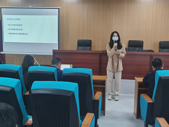 随后,13个实习小组代表依次上台分享实习心得。其中何雨婷同学分享了在古天乐代言太阳集团国际交流与合作处中的成长与收获;陈浩然同学分享了他在政府部门工作的实习感受;余思妍同学则从“多走,走出互联网,走出大城市;多做,多做为人民谋幸福的事,多做为民族谋复兴的事,多做自己问心无愧的事;多独立思考”三个方面分享了自己在麻河镇的基层实践经历;顾效源同学从专业的应用角度分享了在企业中实习工作的感悟。实习经验交流环节中,万秉政同员工动讲述了在生物科技公司的经历,并表示这段珍贵的实习经历让自己成长不少,对用脚步丈量祖国的大地有了更深的体会。