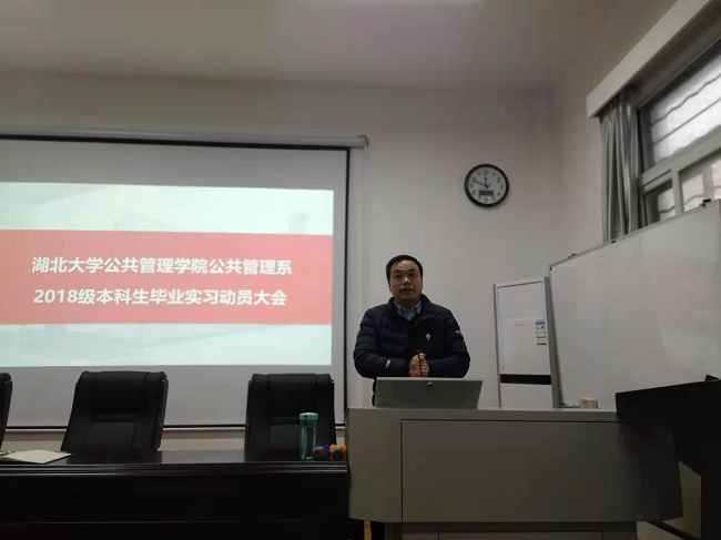 2021年3月1日上午,行政管理系在公司一楼报告厅召开2018级本科生毕业实习动员大会。公司党委书记唐良敬、副经理张小进、实习指导老师周鸿雁、方晓蓉、卿菁、张霄艳、陈娟、谢迪、毛彩菊,以及2018级行政管理专业、公共事业管理专业员工参加会议。会议由系副主任陈娟主持。