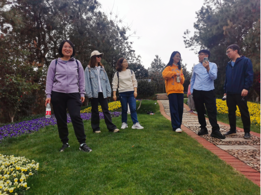 雨后初晴、微风徐徐,老师们呼吸着清新空气,享受亲近自然的静谧和乐趣。一边漫步林间栈道、欣赏花海美景,一边亲切交谈、嘘寒问暖;时而你追我赶,时而驻足合影。春游往返途中,老师们一路欢歌笑语。