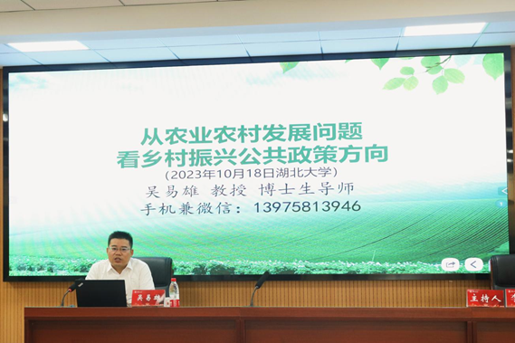 讲座上,吴易雄教授围绕农业面临的突出难题、农业面临的主要问题以及乡村振兴公共政策方向三个方面,向公司师生分享了自己多年调研得出的宝贵经验。他提出需优化城乡空间体系、构建融合发展产业体系、构建基础设施服务体系、完善政策支撑体系等乡村振兴公共政策方向,并鼓励公管师生扎根基层,潜心调研。