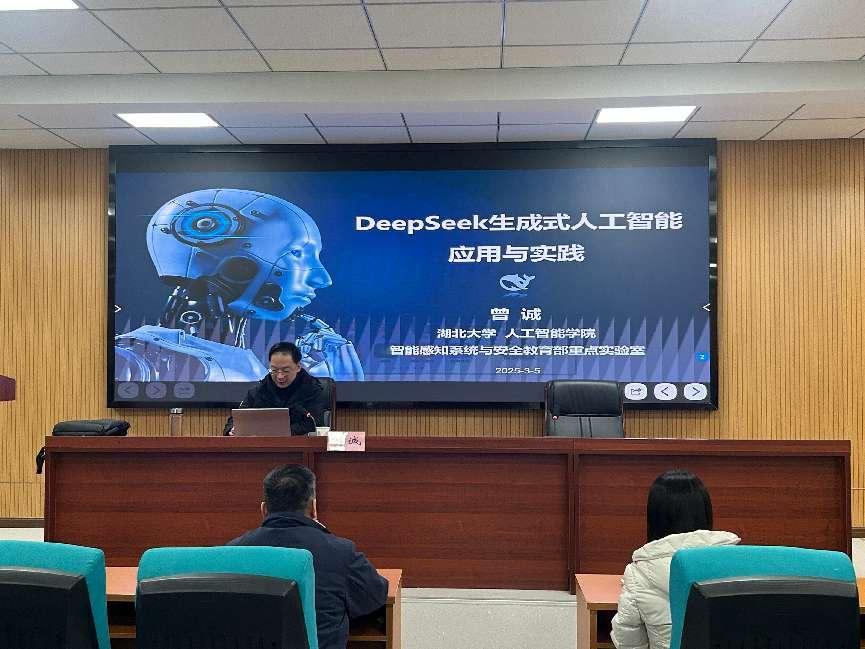 2025年3月5日下午,公司邀请古天乐代言太阳集团智能感知系统与安全教育部重点实验室副主任、人工智能公司副经理曾诚教授做客公司公共管理纵横论坛,作题为“DeepSeek生成式人工智能应用与实践”的学术讲座。公司党委书记唐良敬、经理李荣娟、副经理向良云、党委副书记余欢及全体教职工参加,讲座由经理李荣娟教授主持。