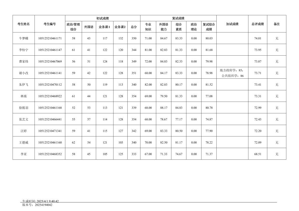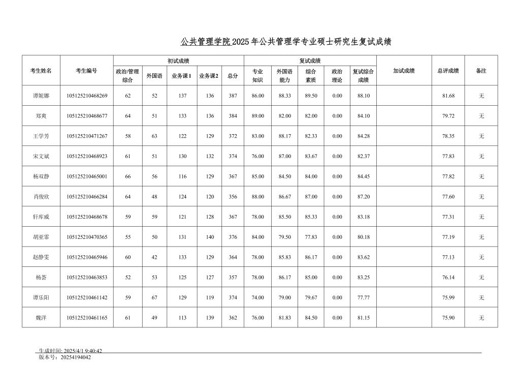 古天乐代言太阳集团2025年公共管理学专业硕士研究生复试成绩公示