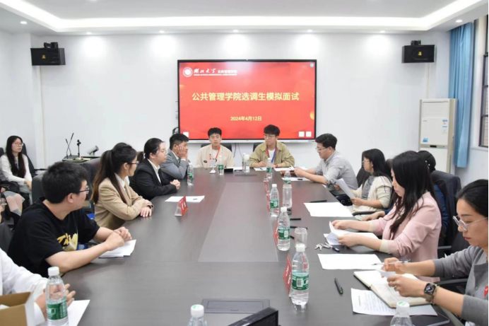 本次选调生模拟面试参照湖北省选调生面试真实场景布置,整场面试严格按照选调生面试流程进行,从面试命题、评委构成、答题计时到考场设置,还原真实考场环境,为考生营造全真模拟氛围。参加面试的考生提前抽签确定顺序,由工作人员引导进入候考室和考场,在规定时间内进行作答。面对问题,考生深入思考,从容应答,获得了考官们的一致肯定。
