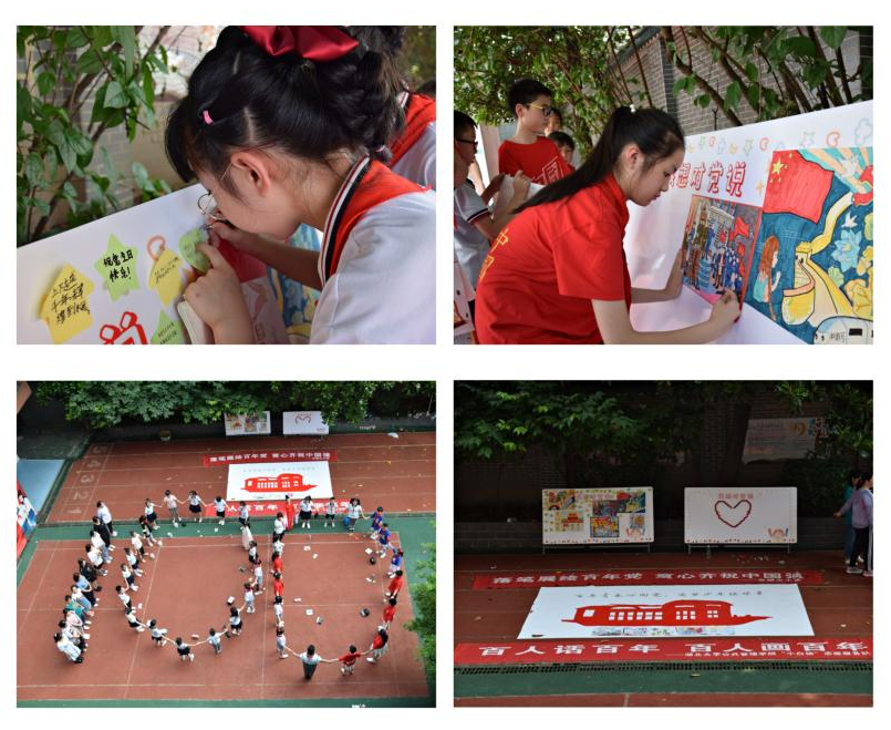 志愿者们与吕锡三小学党员教师、共青团员、少先队员们通过“志愿者党史宣讲”“共画红船”“我想对党说绘画留言”“折红船”四个子活动,共学党史故事,感悟红船精神。
