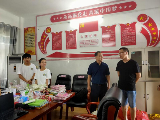7月13日,公司党委书记唐良敬一行赴孝感市孝昌县丰山镇中心小学,看望七色光暑期支教团队成员。中心小学副董事长朱高伟接待唐良敬一行。公司党委副书记肖勇,辅导员刘健、刘冬雪参加活动。