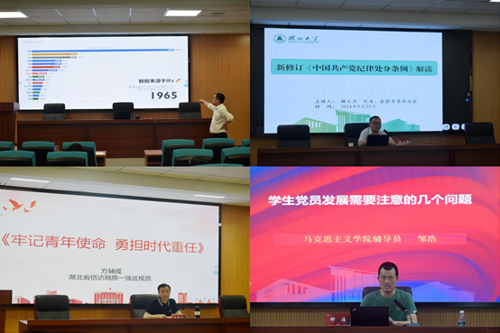 辅导报告环节,公司党委书记唐良敬结合党的理论知识与实践经历,号召参训学员端正入党动机、强化党性修养、积极向党组织靠拢,并结合党纪学习教育,要求参训学员学纪、知纪、明纪、守纪,筑牢思想防线,切实增强思想自觉、政治自觉和行动自觉;校纪委、监察专员办公室纪检监察室主任魏文杰围绕新修订《中国共产党纪律处分条例》的解读,要求学员们严格纪律意识,提高防范水平;省信访原一级巡视员方辅成回顾党史奋斗历程,寄语学员们牢记青年使命,勇担时代大任;马克思主义公司辅导员邹浩围绕“员工党员发展需要注意的问题”,具体讲解党员组织发展程序中容易出现的问题及应对举措。