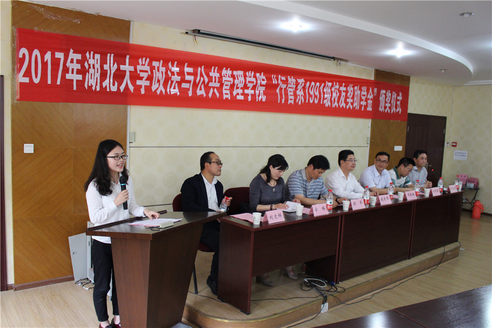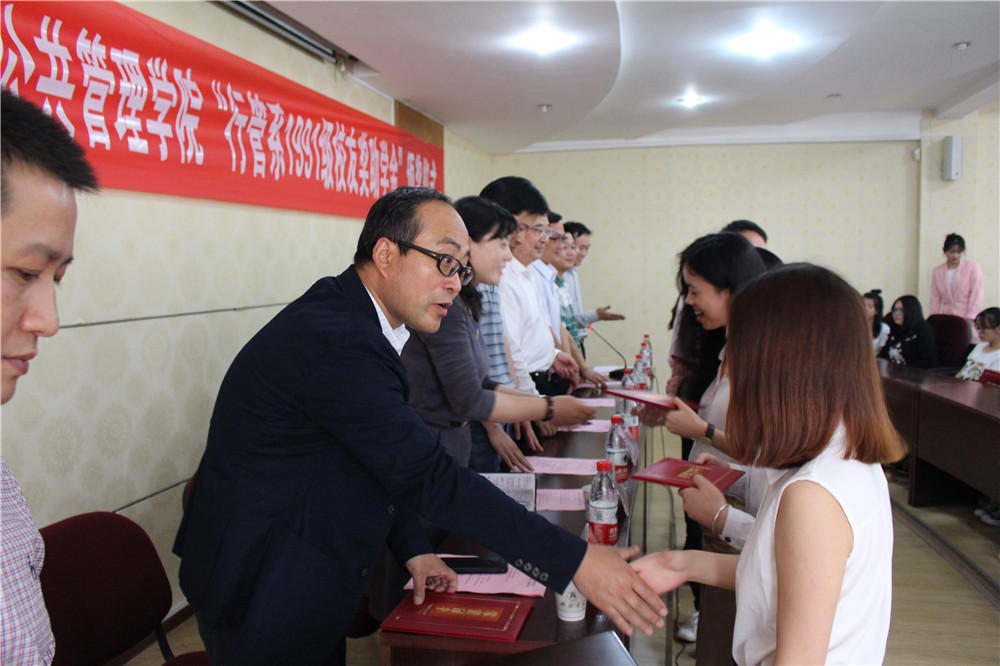 随后,郑全新书记宣布获奖员工名单,戴红利等15名同学获得“行管系1991级员工奖助学金”。